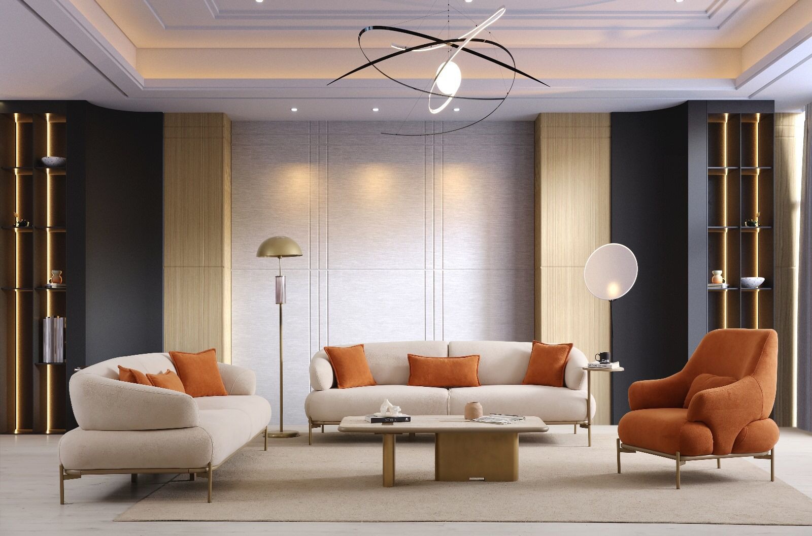 Modern modeller, sade çizgiler ve minimal detaylarla tasarlanır. Bej renk ile birleştiğinde ferah, temiz ve şık bir atmosfer oluşturur. Küçük ve orta büyüklükteki salonlarda sıkça tercih edilir.