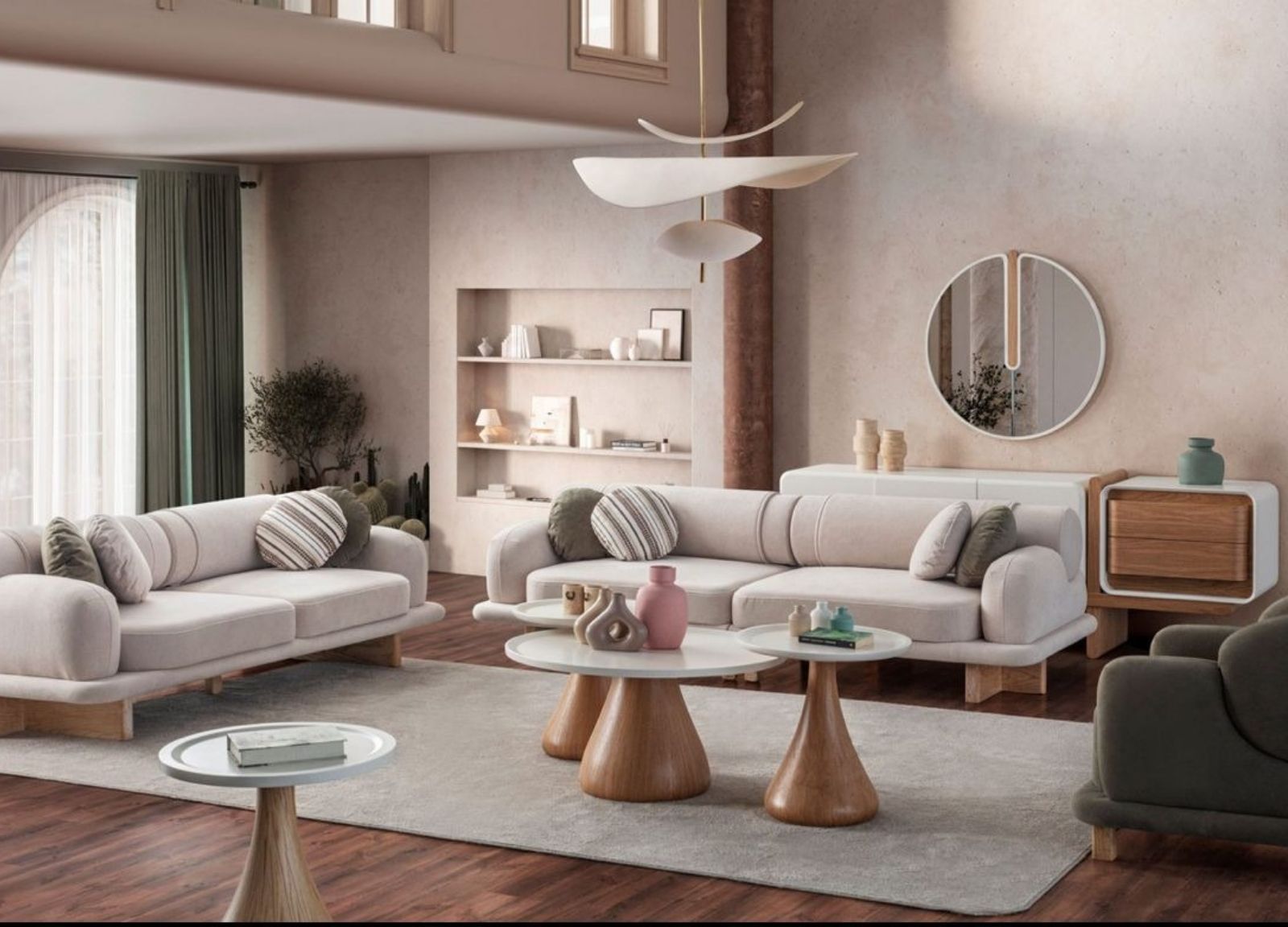 Modüler koltuklar, parçaların ayrı ayrı kullanılabildiği esnek tasarımlardır. Bu sayede istenilen yerleşim kolayca oluşturulabilir. Bej tonlar, bu modellerde düzenli ve sade bir görünüm sunar.